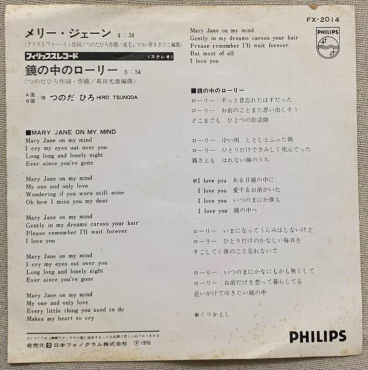 1976年、定価600円、日本フォノグラム、番号FX-2014