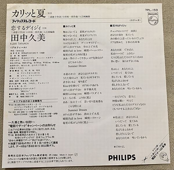 1984年、定価700円、日本フォノグラム、番号7PL-159