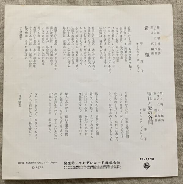 1970年、定価400円、キング、番号BS-1198