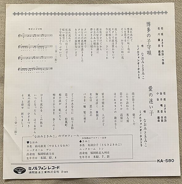 1975年、定価500円、ミノルフォン~徳間音楽工業、番号KA-580