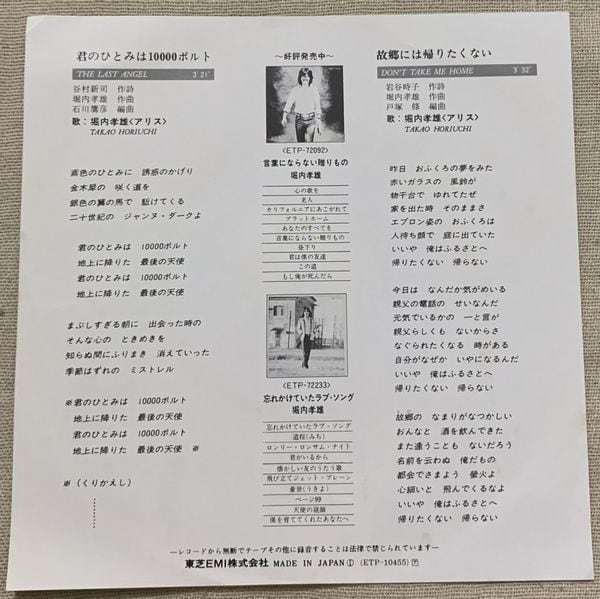 1978年、定価600円、東芝EMI、番号ETP-10455
