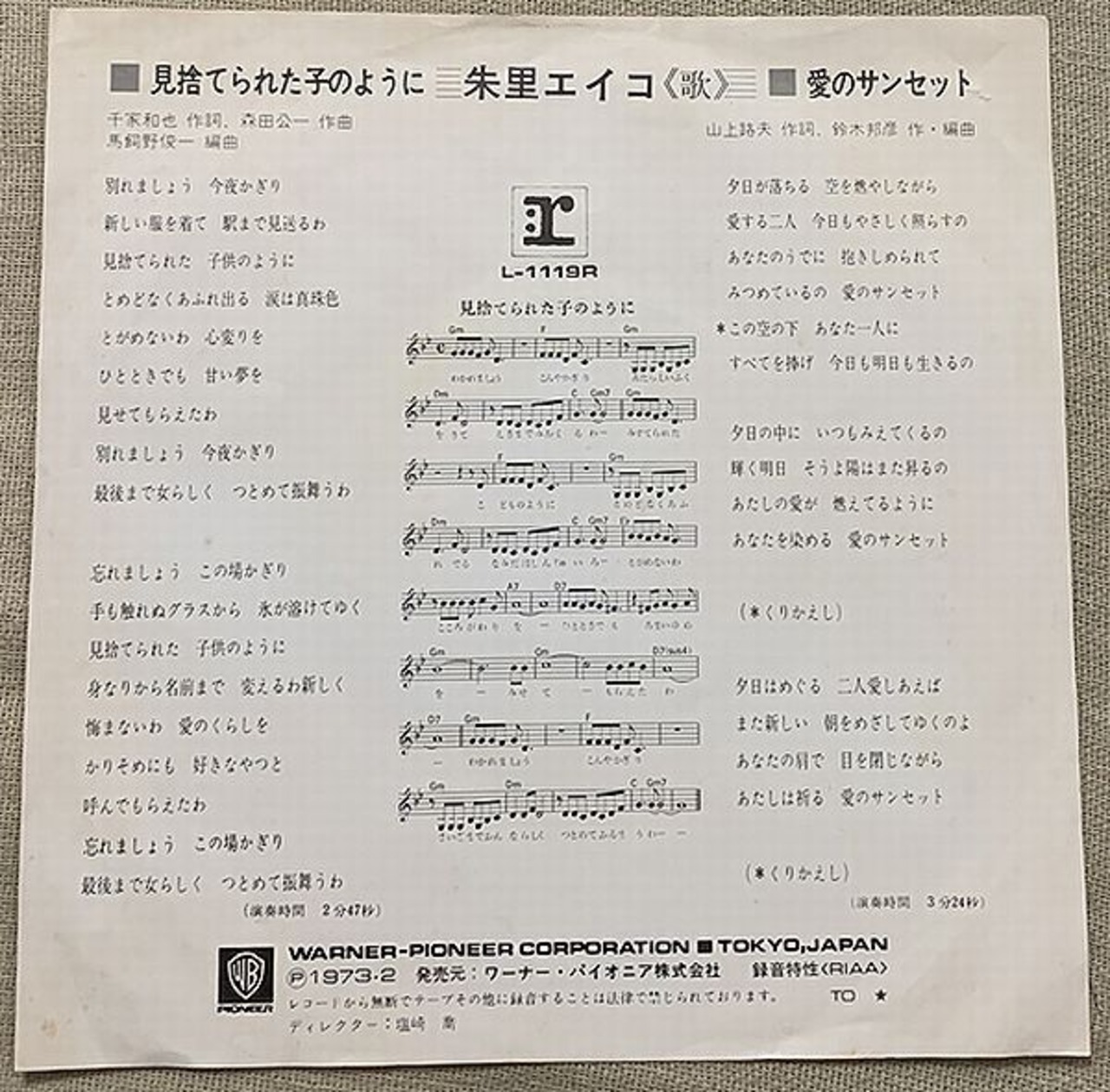 1973年、定価500円、ワーナー・パイオニア、番号L-1119R