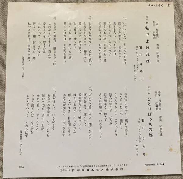 1975年、定価500円、日本コロムビア、番号AA-160
