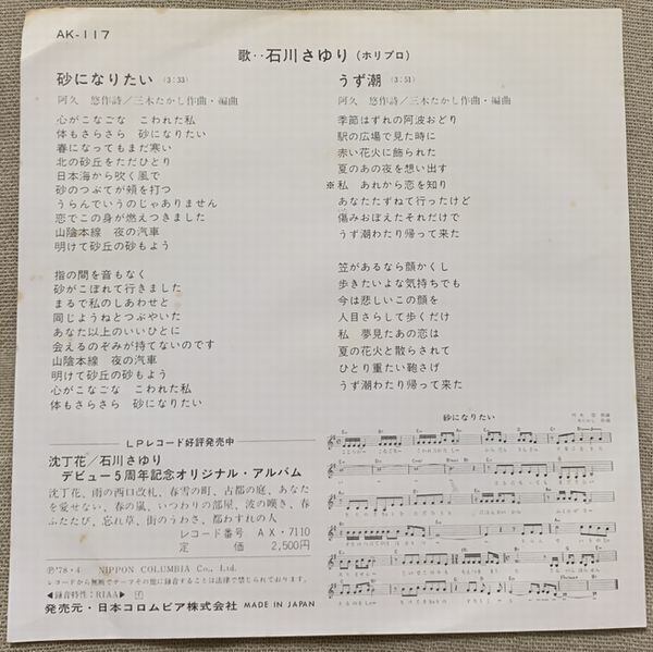 1978年、定価600円、日本コロムビア、番号AK-117