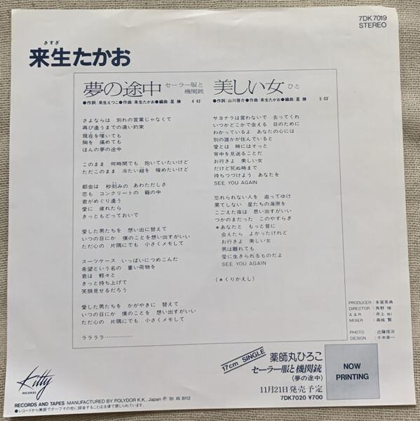 1981年、定価700円、Kitty~ポリドール、番号7DK7019