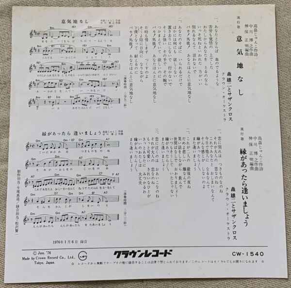 森雄二とサザンクロス / 意気地なし □商品詳細