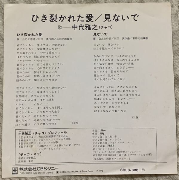 1975年、定価500円、CBS・ソニー、番号SOLB-300