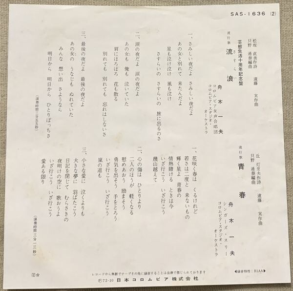 1972年、定価500円、日本コロムビア、番号SAS-1636
