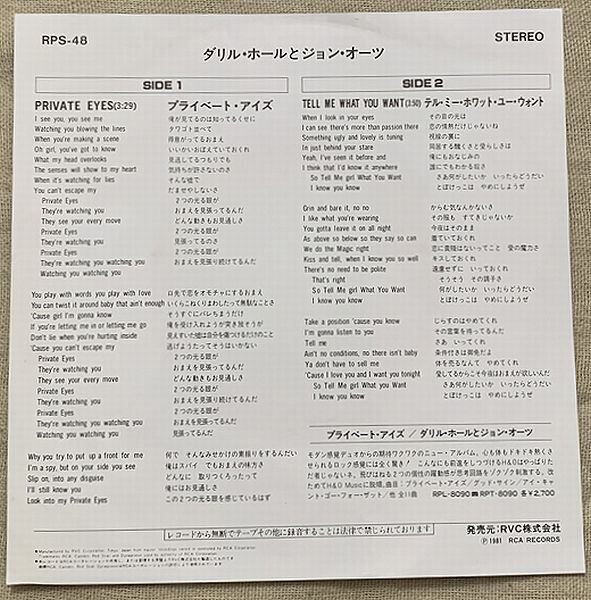 ダリル・ホールとジョン・オーツ / プライベート・アイズ