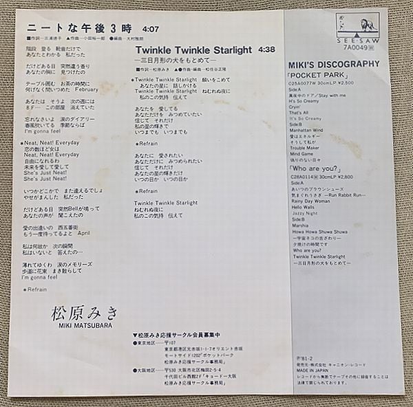 作詩/松原みき、作曲・編曲/松任谷正隆