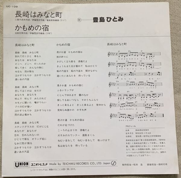 作詩/二条冬詩夫、作曲/伊藤雪彦、編曲/竜崎孝路