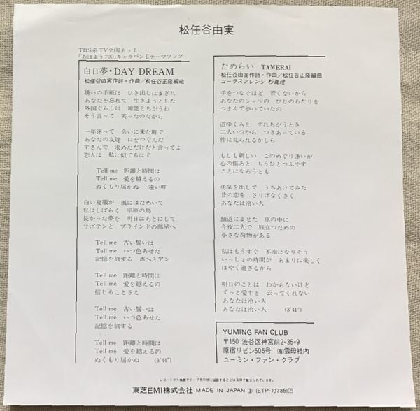 作詩・作曲/松任谷由実、編曲/松任谷正隆
