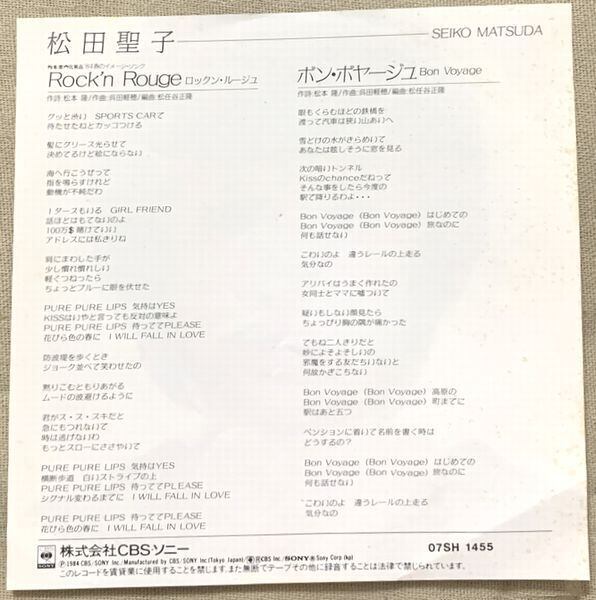 1984年、定価700円、CBS・ソニー、番号07SH 1455