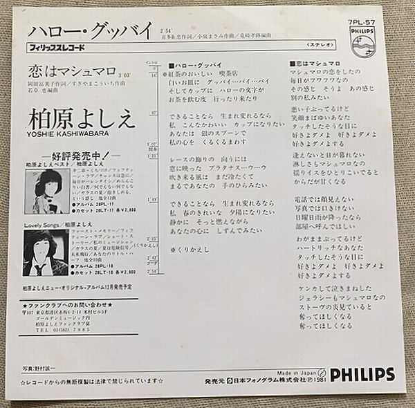 1981年、定価700円、日本フォノグラム、番号7PL-57