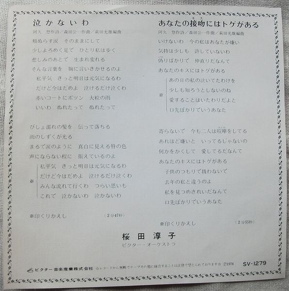 1976年、定価500円、ビクター音楽産業、番号SV-1279