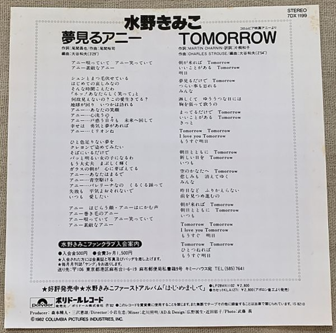 1982年、定価700円、ポリドール、番号7DX1199