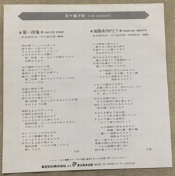 作詩/松本隆、作曲/川口真、編曲/馬飼野康二