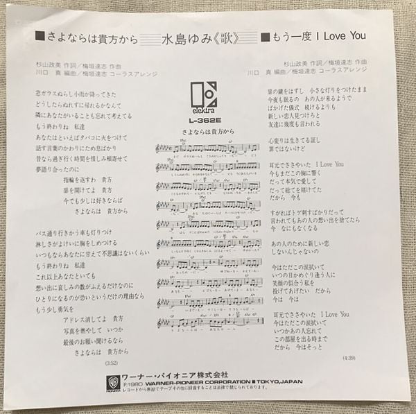 1980年、定価600円、ワーナー・パイオニア、番号L-362E