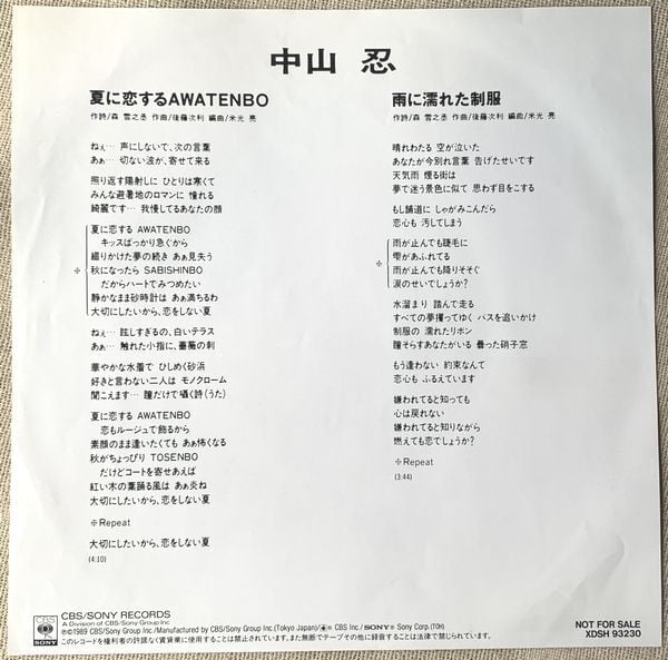 作詩/森雪之丞、作曲/後藤次利、編曲/米光亮