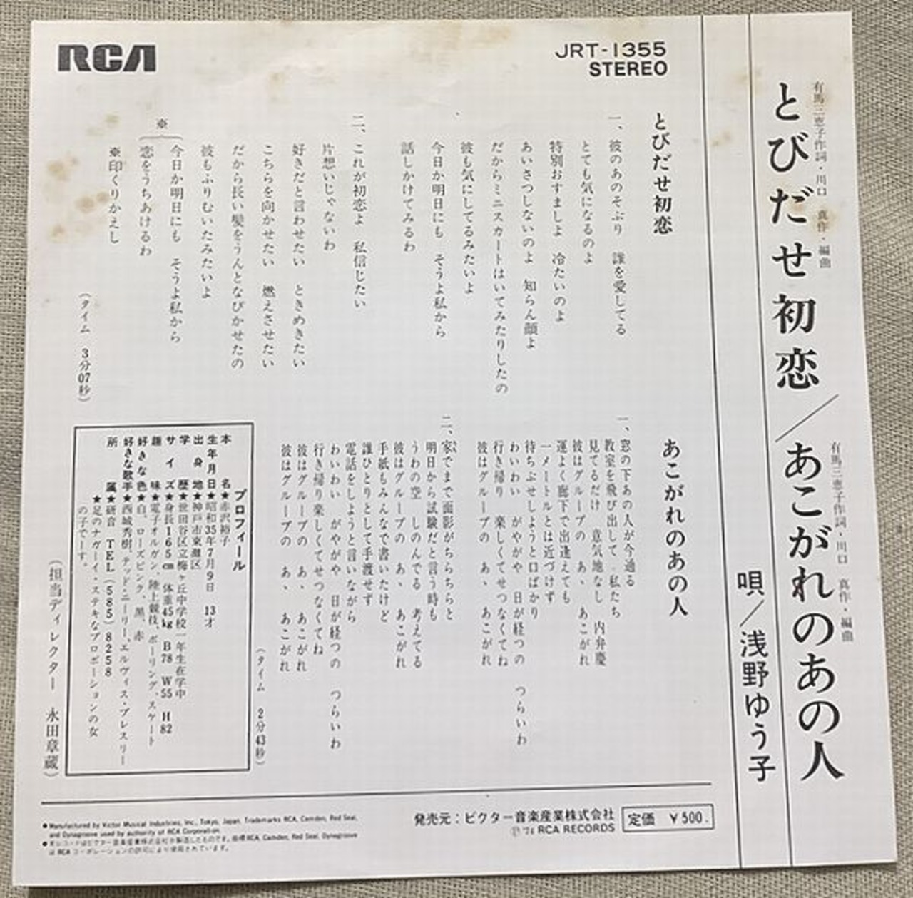 1974年、定価500円、ビクター音楽産業、番号JRT-1355