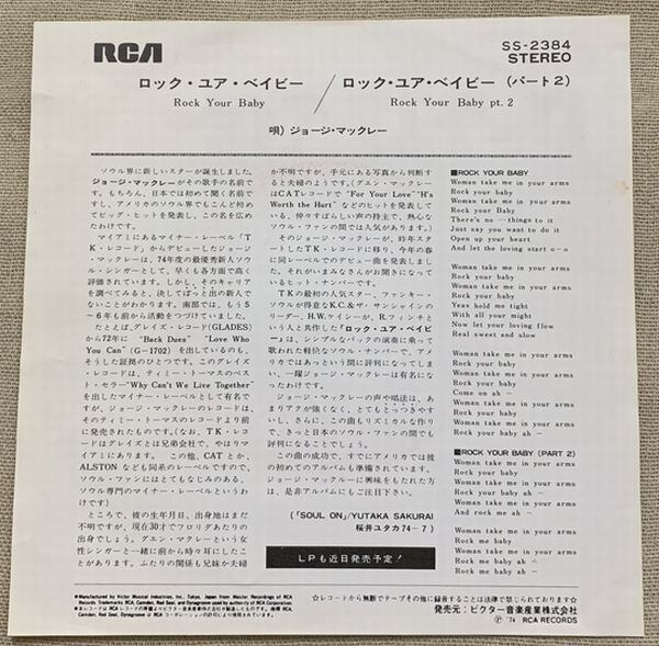 B面「ロック・ユア・ベイビー(パート2)」Rock Your Baby pt.2
