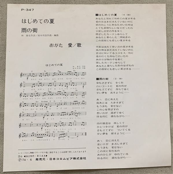 1974年、定価500円、日本コロムビア、番号P-347