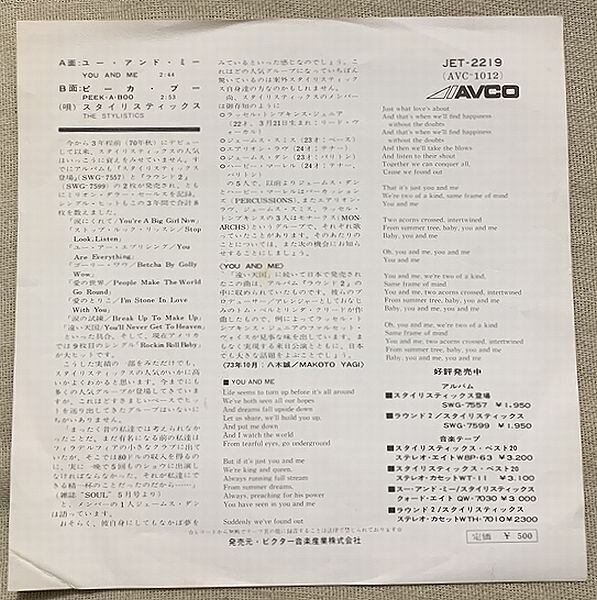 両面とも正にスタイリスティックスといった荘厳でスウィートなバラード・ナンバーです、やはりラッセル・トンプキンス・ジュニアのファルセットが極上です