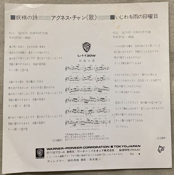 1973年、定価500円、ワーナー・パイオニア、番号L-1130W