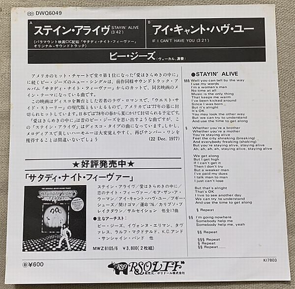 映画「サタデイ・ナイト・フィーバー」からのシングル
