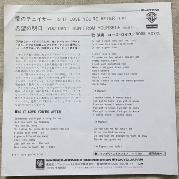 1979年、定価600円、ワーナー・パイオニア、番号P-475W